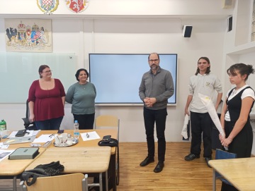V pátek 28.11. u nás proběhl tradiční Den romské kultury. Romistka paní Markéta Hajská a terénní sociální pracovnice paní Dana Hrušková přednášeli, povídali si, diskutovali a do tajů romské kultury "zasvěcovali" naše terciány. A bylo to dopoledne opravdu vydařené. Díky empatii, laskavosti a erudici obou našich hostů, jakož i za přispění pracovitých a zodpovědných terciánů se z tohoto setkání stalo společenství lidí, kteří vnímají význam a nezastupitelnost vzájemné tolerance, respektu a sounáležitosti. Na samotný závěr všem poděkoval pan generální ředitel Jan Teplý a zástupci třídy tercie předali našim milým hostům kytičku a dárek.