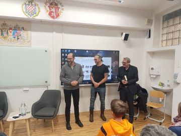 Hostem naší proslulé GEVO kavárny Plus byl v pondělí zahraniční zpravodaj, novinář a spisovatel Jakub Szántó. Jeho vyprávění o podstatě a smyslu jeho práce bylo velmi inspirující. Na základě fotografií i videí z míst, kde působil "vtáhl" všechny přítomné, studenty, rodiče i kolegy do samého srdce dění. Gaza, Palestina jako taková, Ukrajina, ano i podmořské hlubiny blízko města Haifa, to vše nám poskytlo fascinující vhled do dramatické a nebezpečné práce vynikajícího novináře. Na závěr byl pan Szántó "odměněn" mnoha dotazy, ale i dortem, knihou a vínem. Tímto děkujeme nejenom našemu milému hostovi, panu Jakubovi Szántó, jakož i všem, kteří se vměstnali do naší milé gymnaziální "kavárny".
