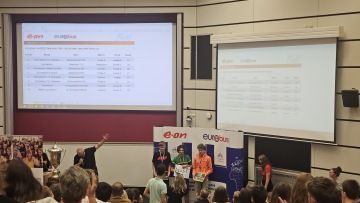 3. června se v přednáškovém sále ČVUT sešli úspěšní řešitelé krajských kol soutěže Eurorebus, aby změřili síly ve finálovém kole. Gevo reprezentovaly dva týmy v kategorii ZŠ02, jeden z tercie a druhý z kvarty. A paradoxně zklamanější odcházeli ti úspěšnější. Je to zkrátka o očekávání. A to bylo po úspěchu v krajském vysoké, medailové. Placka klukům z kvarty utekla o bod a skončili šestí. Terciáni s úsměvem na rtech skoro v první polovině (celkově se účastnilo 42 týmů). No tak letos to necinklo, ale myslím že i jízda páter nosterem, předplatné časopisu National Geographic z krajského kola, či zajímavosti z vitrín na chodbách ČVUT stály za to.
