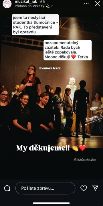 Děkujeme všem, kteří náš muzikál podpořili svou prací, slovem, potleskem nebo finančně. Každé pomoci si moc vážíme.