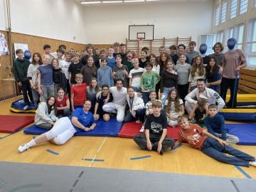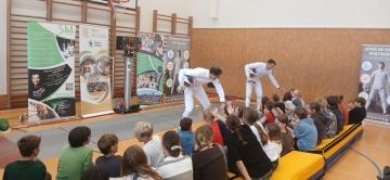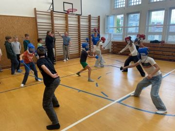 Čtvrteční dopoledne 9. 10. patřilo na Gevu šermu. Studenti nižšího gymnázia zažili program s šermířskou elitou Jiřím Beranem a Martinem Čapkem, tuto dvojici doplnila Iva Krombholzová z letňanského šermířského klubu. Dozvěděli jsme se, co vše obnáší být dobrým šermířem, zároveň si studenti mohli vyzkoušet prakticky šermovat jak proti sobě, tak i proti profesionálům. Jirka a Martin přivezli ukázat i své medaile a velmi milý a zábavný program byl zakončen zápasem s jedním z vyučujících.