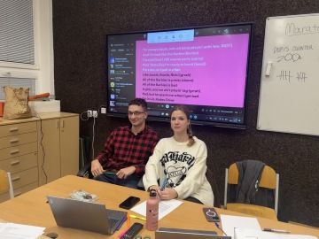 Semi Himmat, Anna Šilhánová, Amálie Štětinová, Martin Azilinon, Ráchel Štorková, Christián Demel, Matyáš Dulava a Petr Allen Kameník z IB1 s Monikou Marianovou z IB2
