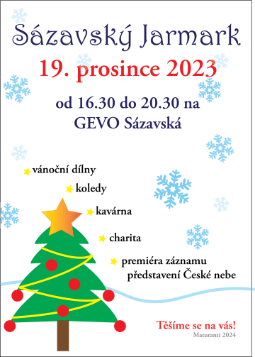 Jarmark bude probíhat v úterý 19.12 od 16:30 na Gymnázium Evolution Sázavská.