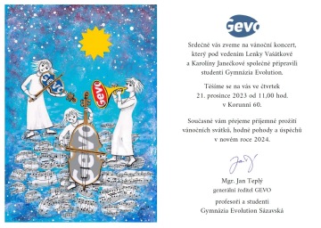 Pozvánka na vánoční koncert GEVO a přání příjemného prožití vánočních svátků