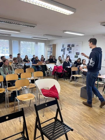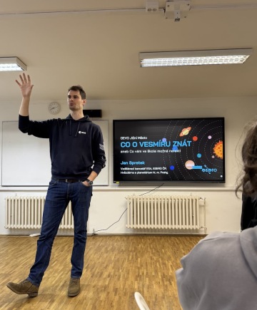 Ve čtvrtek 13. března 2025 na naši školu zavítal Jan Spratek, koordinátor vzdělávací kanceláře ESA (European Space Agency) ESERO ČR a popularizátor vědy. Jeho úžasně motivační, zajímavou a inspirující přednášku si vyslechli studenti z 2. AB a 5. AB. Nejenže jim pověděl spoustu zajímavých informací o vesmíru, ale také ukázal, jak je možné se vesmírným aktivitám věnovat už teď, při studiu na střední škole.
