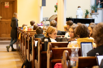 Ve čtvrtek 21. prosince se pak všichni studenti a učitelé sešli na Vánočním koncertě GEVO ve farním sboru Českobratrské církve evangelické v Korunní 60. Koncert byl první ochutnávkou z připravovaného muzikálu, který se bude hrát v divadle Na Fidlovačce v lednu 2025. Náš pátý pátý autorský muzikál chceme posunout zase o kousek dál a podařilo se nám navázat spolupráci s hudebním profesionálem Danem Bártou a jeho kapelu. Ze záznamu si koncert můžete pustit i vy zde.