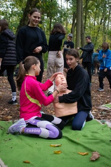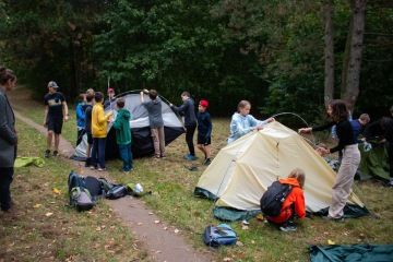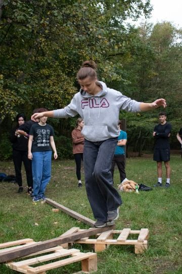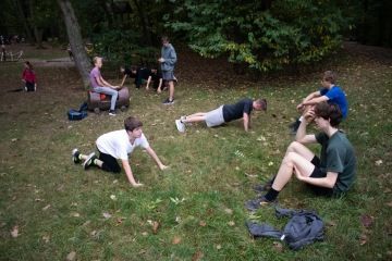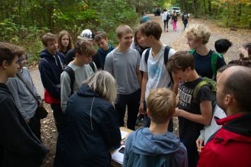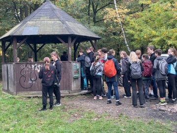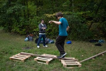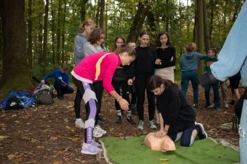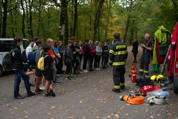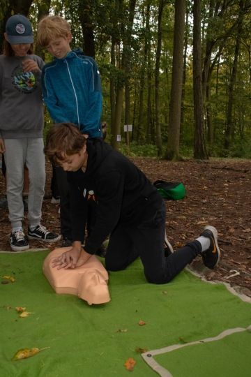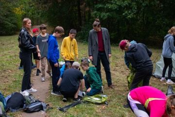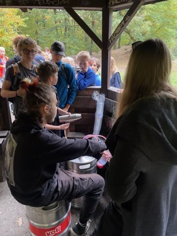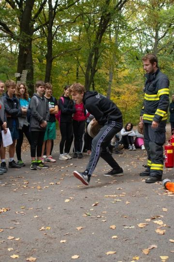První celoškolní projekt GEVO Sázavská nás ve čtvrtek 12.10. vrátil možná o několik desetiletí zpátky do doby branných dní. Napůl vážně, napůl nevážně třídy absolvovaly 12 stanovišť rozprostřených v Trojském háji a plnily zadané úkoly. Některé byly vědomostní - poznávačka fauny a flory, některé logické, jiné fyzické - kliky, hod granátem, štafetový skok do dálky. Důležité bylo, že si všechny třídy vedly dobře i v dovednostních úkolech - postavit stan, přepravit "zraněného", zvládnout základy protipožární ochrany, nebo simulovanou zástavu srdce. V popularitě samozřejmě vítězilo stanoviště č. 10 občerstvení, sníst párek v rohlíku se všem třídám povedlo na sto bodů ze sta. Máme radost, že si studenti "branný den" užili, za jeho nesnadnou přípravu děkujeme panu prof. Černému, Žižkovi, Brožkovi a studentům oktávy :) Za fotografie pak děkujeme Daliboru Šmídovi z oktávy.