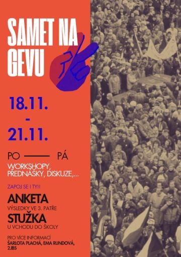 Týden 18.–21. listopadu 2025 věnujeme připomínce 36. výročí 17. listopadu 1989. Studenty tercie až oktávy čekají workshopy, diskuse a aktivity zaměřené na témata svobody, demokracie a občanské odpovědnosti.
