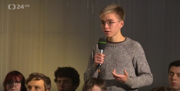 Dotazy za studenty GEVO pokládali Kryštof Navara a Ema Rychecká