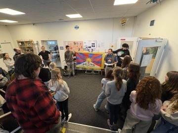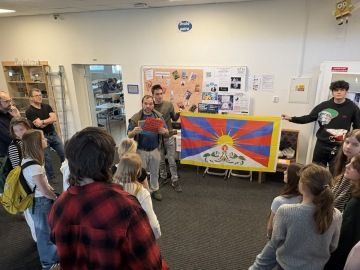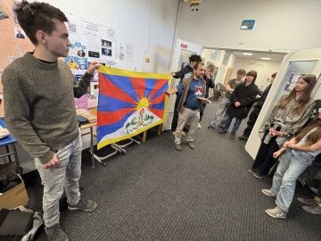 Dnes jsme si o velké přestávce připomněli 66. výročí povstání Tibeťanů proti nezákonné okupaci Tibetu Čínou. S prof. Mikem jsme vyvěsili vlajku pro Tibet a současně jsme na dálku do exilového sídla Dharamsaly popřáli dalajlámovi vše nejlepší k jeho 90. narozeninám ve 14. reinkarnaci. ⛓️💥