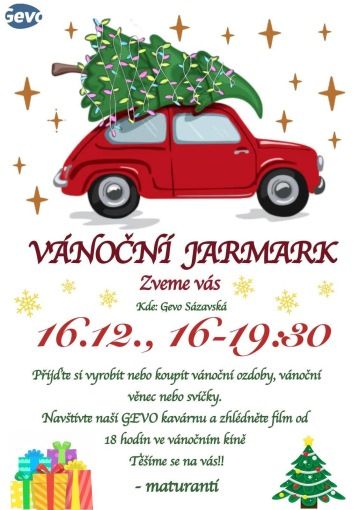 zveme vás na Vánoční jarmark v pondělí . . od hodin na GEVO Sázavská.