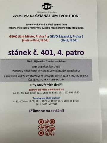 až do soboty 23.11. do 15 hodin se na vás budeme těšit na veletrhu středních škol Schola Pragensis, který se tradičně koná v Kongresovém centru Praha. Najdete nás a naše studenty ve stánku 401 ve 4. patře.
